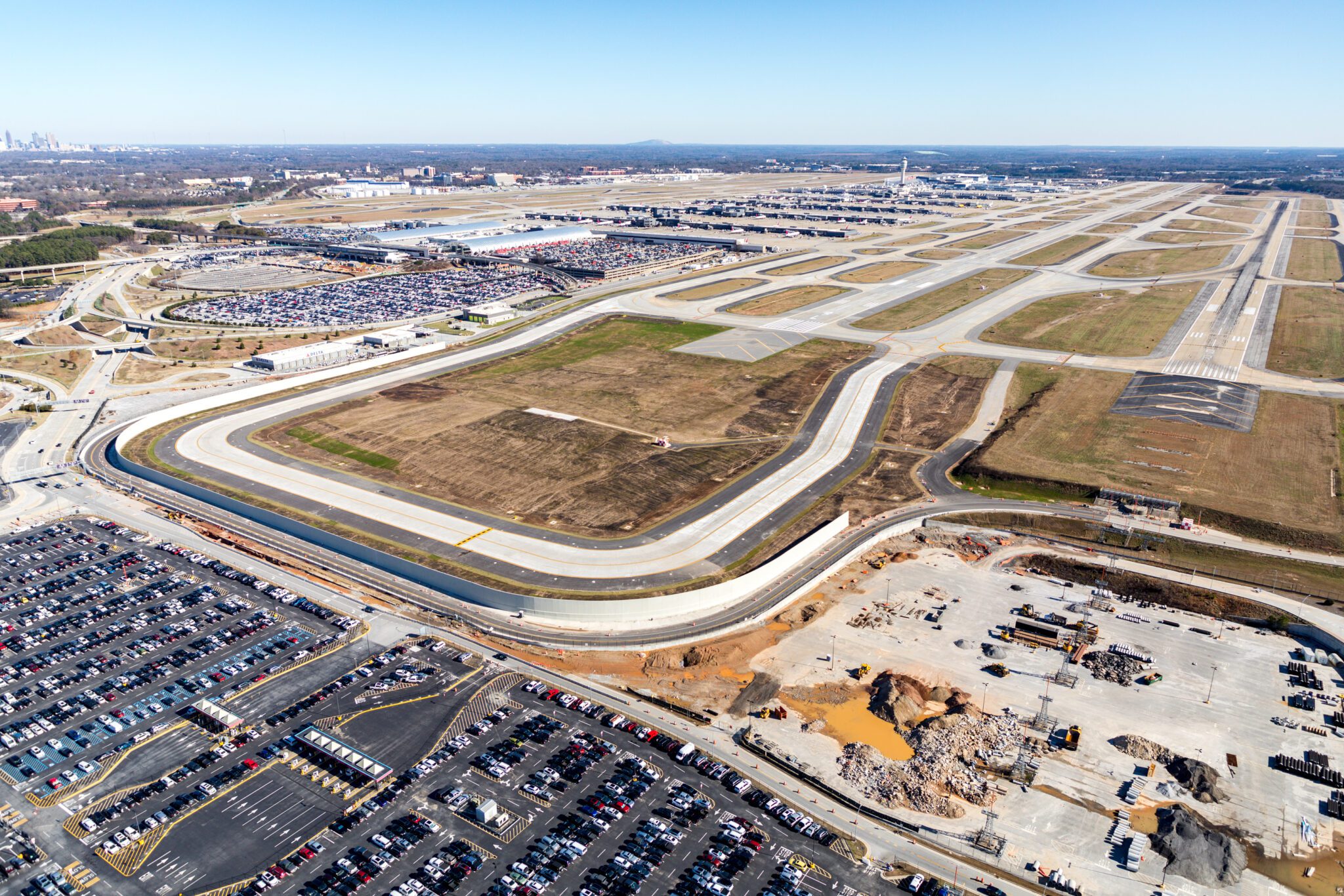 The City of Atlanta Department of Aviation (DOA) constructed a new taxiway and parallel, relocated, non-licensed vehicle road (NLVR) around the west end of Runway 9L at Hartsfield-Jackson Atlanta International Airport.